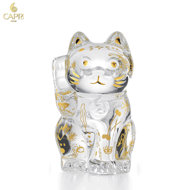 Sinh vật mèo với các đặc điểm hoạt hình được nhìn thấy đang vẫy gọi bằng tay phải - một cử chỉ được cho là để bảo vệ tài sản của một người. Con mèo pha lê Baccarat Clear này, hay còn gọi là Maneki-neko trong tiếng Nhật, có rất nhiều chi tiết cẩn thận. Kỹ thuật khó khăn của Baccarat thể hiện rõ ở bàn chân, nét mặt và cổ áo. Bột mạ vàng bổ sung được thoa lên tai, mắt, miệng và râu của mèo. Biểu tượng may mắn này là một tác phẩm được chế tác tỉ mỉ có thể hút vận may trực tiếp vào nhà của bạn. Con mèo Lucky cũng có sẵn trong pha lê nửa đêm.