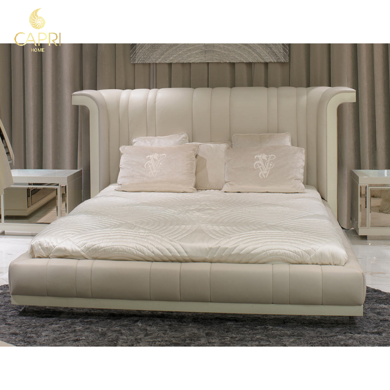 Giường Ngủ Đôi Cao Cấp Đầu giường: cấu trúc bằng ván ép tổ ong dương mm 25 với chất độn bằng ván ép mm 4. Viền dải lớn bằng gỗ sồi sơn mài bóng. Đệm bằng polyuretan D. 40 kg / m3 có lớp phủ D. 30 kg / m3. Cơ sở bằng gỗ được bao phủ bởi thép laminate. Vải bọc được làm bằng chần bông dọc có hỗ trợ bằng lớp polyurethane Memory Foam mm 20. Khung giường: bằng gỗ dương nhân gỗ mm 25 có dạng tổ ong với ván ép mm 4 và đệm bằng polyurethane D. 40 kg / m3. Vải bọc được làm bằng chần bông dọc với sự hỗ trợ trong lớp polyurethane Memory Foam mm 20. Đế bằng MDF sơn mài bóng trên nền gỗ được phủ bằng thép không gỉ đánh bóng. Bốn giá đỡ góc có góc cạnh và một thanh ngang trung tâm, bằng thép sơn, tạo nên phần cứng được bao gồm để lắp ráp chu vi giường và cố định tương đối với đầu giường để hỗ trợ, có thể điều chỉnh độ cao cho các thanh để xác định mức giường. Khăn phủ giường Porfirio.