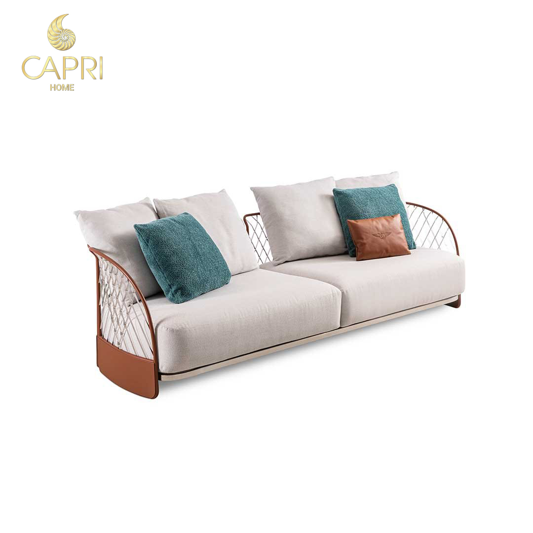 Ghế sofa cao cấp Lưới tản nhiệt bằng thép siêu gương bao quanh và ôm lấy ghế sofa và ghế bành Solstice. Mỗi thanh riêng lẻ, được thiết kế theo đường viền cong của tựa lưng, được cắt bằng điều khiển số và có các thay đổi phức tạp trong mặt cắt ngang, tạo ra các rung động trang nhã trong kiểu dệt. Sự nhẹ nhàng của lưới tản nhiệt thể hiện sự nhất quán trong các chi tiết bọc da và vải.
